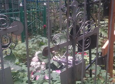 Исходное состояние:Пять могил без ухода за высокой и крепкой оградой