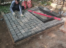 Укладка гранитной брусчатки,
