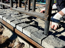 Получившиеся линии были отсыпаны пескобетоном, после чего настало время укладывать брусчатку.